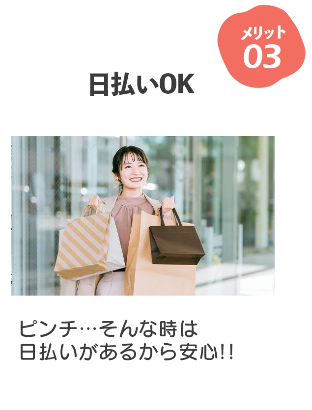 本業の後でも、お買い物の後でも、お好きな時間を使ってください。もちろん長時間のお仕事も可能です。