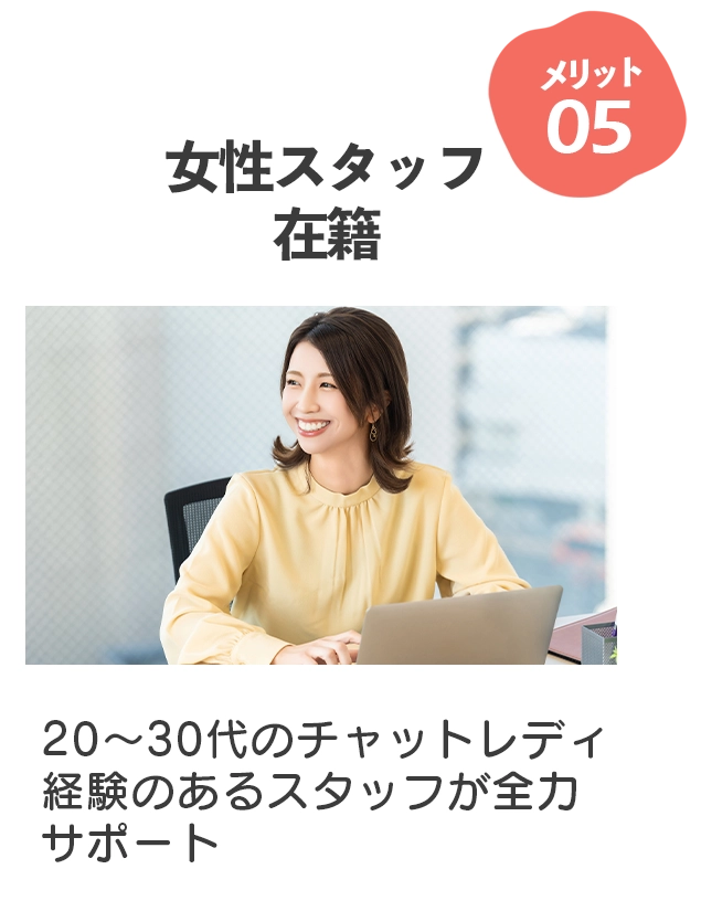 また仕事以外のお悩み・ご相談などもお気軽にご相談下さい、安心してお仕事に打ち込んでいただけるよう全力でサポートさせていただきます。