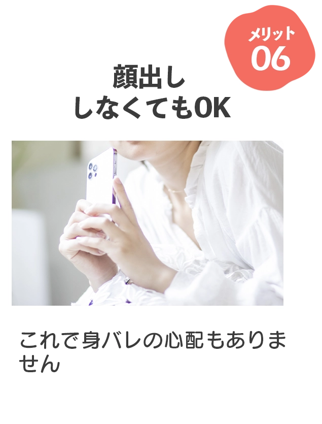 会員様には様々な趣味嗜好の方が集っておられますし、顔を出さないで稼いでいる女性も多数います。自信を持ってくださいね♪