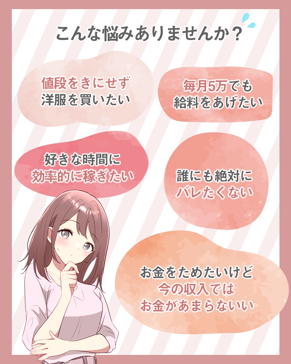 会員様には様々な趣味嗜好の方が集っておられますし、顔を出さないで稼いでいる女性も多数います。自信を持ってくださいね♪