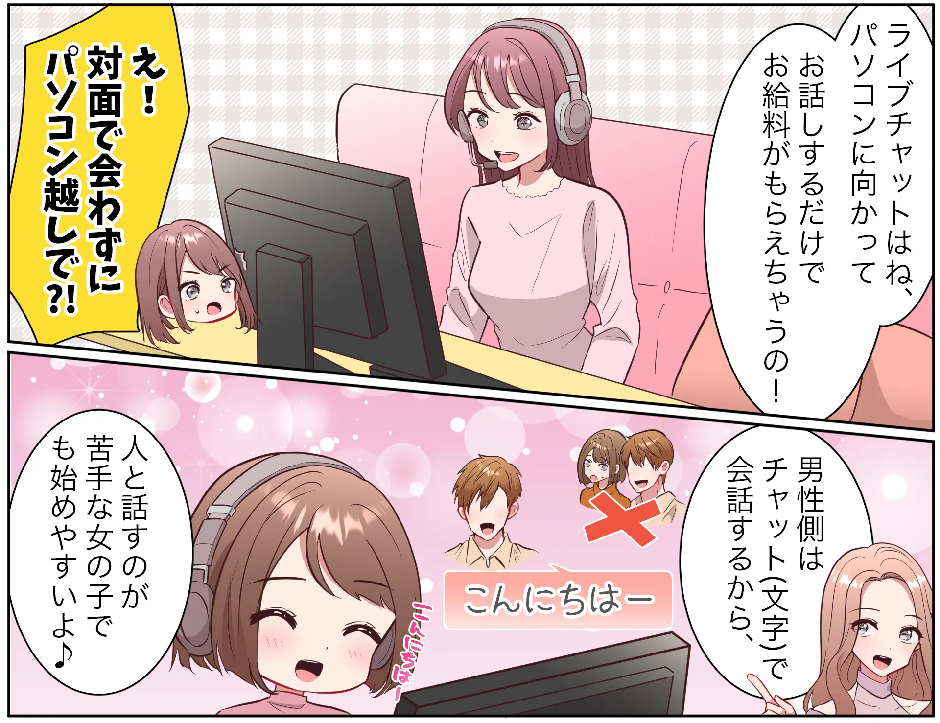 チャットレディの業界では、日によってお客さんが少なく、待機時間が長くなってしまうことがあります。そのため、完全出来高制のライブチャット業界では、通常、収入が発生しない場合もあります。