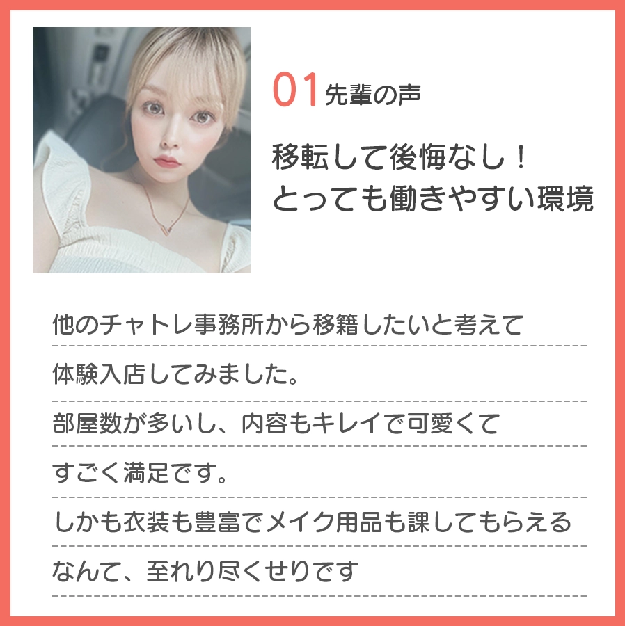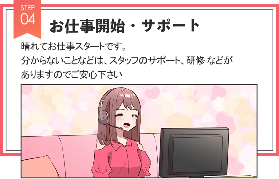 また仕事以外のお悩み・ご相談などもお気軽にご相談下さい、安心してお仕事に打ち込んでいただけるよう全力でサポートさせていただきます。