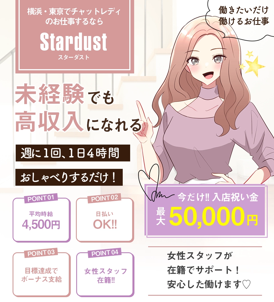 しかし、スターダストでは、女の子の貴重な時間を大切にするという考えから、他社では導入されていない「時給1,200円の最低保証制度」 を設けています。